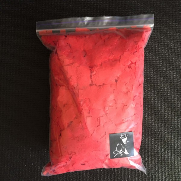 This confetti was finely chopped. It has a special small size, so high to fly and to slowly fall.